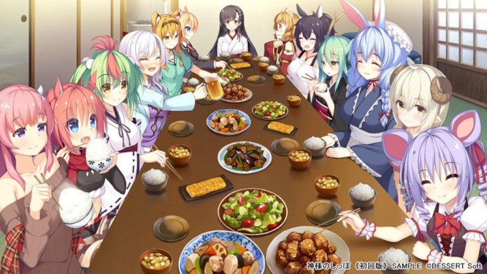 神明的尾巴——生肖妹子们的报恩记日本乡下某处,有着一座祭祀了十二生肖的神社。 神社的名字叫做,天部神社。 神明守护的街道名叫,天部镇。 住在那里的青年——天部秋成,有着不为人知的神奇力量。 秋成能够理解动物们的语言。 喜欢动物的他利用这份力量,过着幸福开心的每一天。 然而这样平稳的日子,却是在某天戛然而止。 这一天在神社仓库中偶然发现了一块神秘石盘的秋成,毫不在意的将手中的宝珠镶嵌进石盘的时候,异变突生——神社中的十二生肖神像突然全部消失。 取而代之,出现在秋成眼前的是【自称十二生肖之神的,十二名少女】 就这样,秋成与少女们奇妙的共同生活,拉开了序幕。但共同的生活,却并非一帆风顺。 【人】与【非人】 少女们的存在,对于秋成,对于世界来说,并不是那么容易,接受的【异质】 不过即使如此,心地善良喜欢动物的秋成,仍旧是一点一点的,缩短着与少女们,心的距离。 对于两人来说,太过广大的浅葱家的饭桌,坐在那里的青梅竹马的少女——浅葱莲华的愿望,乃是想要有朝一日,与大家一同围坐在饭桌前,将这空白的空间填满。 比起别人,对于【真正的家族】更为执着的秋成,在听到这话的瞬间,下定了决心。 【与是不是人没关系,要让大家成为真正的家族。】 如果,我说是如果; 如果十二生肖的故事仍在继续,如果世界上真的存在奇迹,十二生肖的神明,有了人类的身体…… 如果能够自由,快乐的存在于世间…… 这是奇迹的物语,这是童话的故事,这是超越了种族存在的界限,大家族的少年与少女为您带来的,暖心的一曲闲话。 ps:本社的理念便是【羁绊】与【欢乐的日常】,所以本作也可以放心大胆的享用,保证绝对不存在下毒,喂屎,埋雷什么的超展开。本作登场的每一名角色,都有着自己的专属物语!并且主线虽然是一贯的,一本大道后宫结局,不过根据途中的选项,本作也装载了【各女主角的个别路线】。