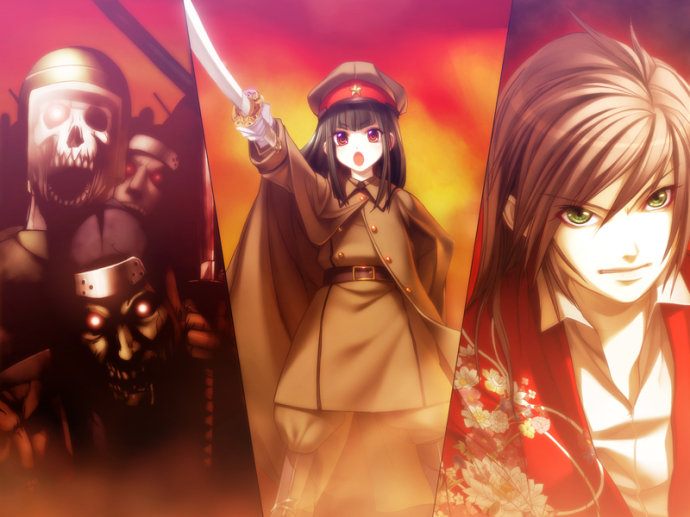 一个二战时没受到原爆的日本 ,一个被美国跟苏联瓜分的日本,一个在两大势力下维持著奇妙平衡的日本,在伟人石马戒严的闭关锁国实施东京戒严的情况下,眼前的依旧是古风盎然,剑客浪行街头的东京府。践踏人骨而去,啃噬着怨怒,耳畔传来的,唯有两剑相撞的声音,无数的刃鸣。故事讲述的就是荒废都市其中武田赤音和伊乌义阿的战斗历程。