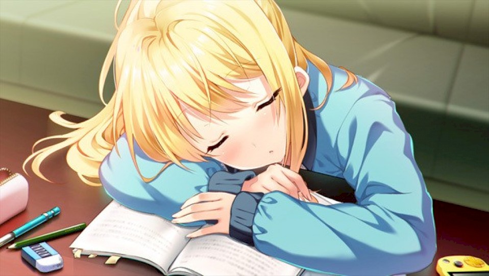 日常生活。埃利斯拼命地把空白的笔记本染成黑色,因为他想和宗一郎一起上大学,并教她她不擅长的