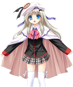 | 冰室忧希 配音 奥川久美子(R00版)、袄川久美子(全年龄版) 『闲得无聊的天才?』 拥有四分之一欧系血统的少女,合作学校的科学部部长,以交流为目的来到了这里。独自进行着各种各样的研究与实验,拥有清晰的思考能力,却经常做出一些让人摸不着头脑的奇怪举动,是一个拥有天才气质的有趣的人。 | |