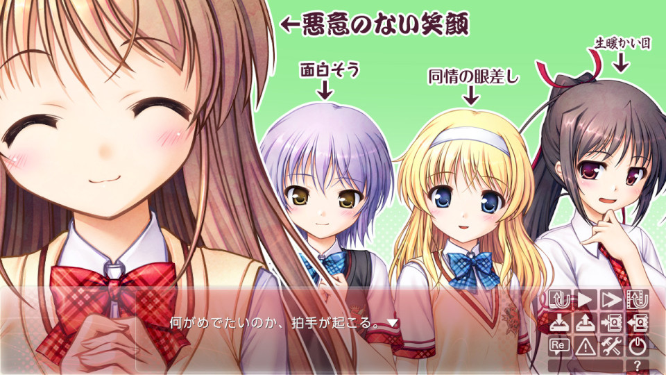 作为图书部中心的存在,致力于让学园生活更加的快乐。虽然并非拉着其他人一起走的类型,她有着以那拼命努力的身影让周围人都想要帮一把的沉静的领导气质。性格稳重,率真得让看到她的人都会感到自己的污秽。白玉微瑕,虽然有时有些顽固,但总会做出撅起嘴巴之类非常好动的反应,经常被成员们捉弄。
