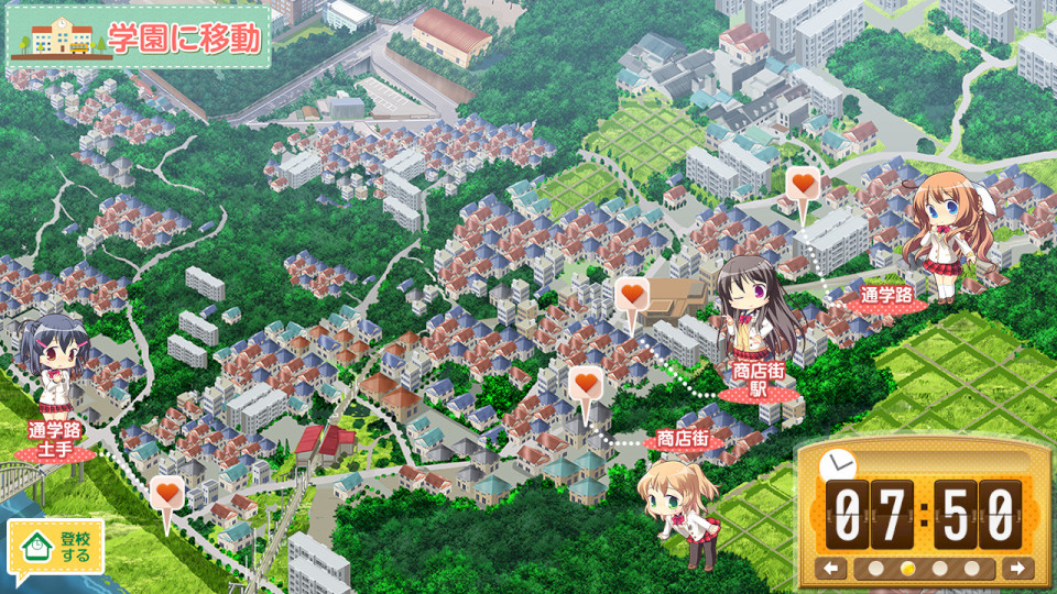 为了表现出与攻略女角色的各种“契机”的效果,本作将在地图选择移动时加入时间的经过。