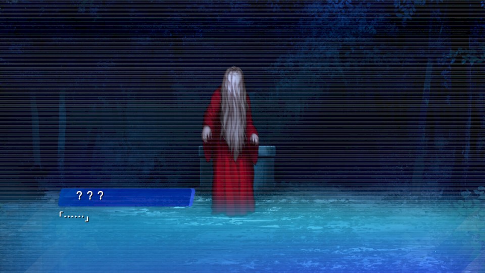 画面出现了一口井,和一位穿着红色衣服披头散发的女人。
