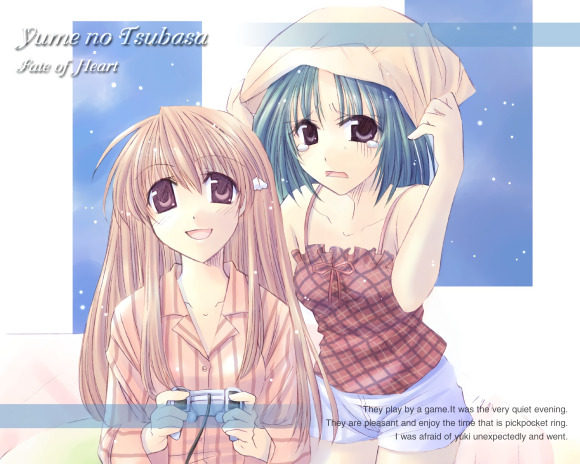 《夢のつばさ》是KID 2003年发售的恋爱AVG。故事发生在某高原地区的一片广袤无垠草原上。在这片美丽的草原上有一个很大的牧场,而牧场附近住着在私立晴空高中的深山直人一家。已经升入高中二年级的直人十分不幸,母亲美佐子在他很小的时候就去世了,而与直子相依为命的父亲深山胜也在直人小学6年级暑假时,在驾驶轻型飞机前往东京的途中无故失踪,虽然直人在祖母及叔父母的关照下衣食无忧,但失去父母的直人依然沉浸在对父亲的深深怀念之中。