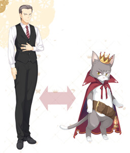 凯西猫:Cat sìth,苏格兰及爱尔兰传说的猫妖。形象多为黑猫,胸前有一撮白毛,衣着华冠丽服,具有高等智慧,操纵人类语言。事实上亦是猫国国王,由名字ミカド(御帝)可略见一斑。