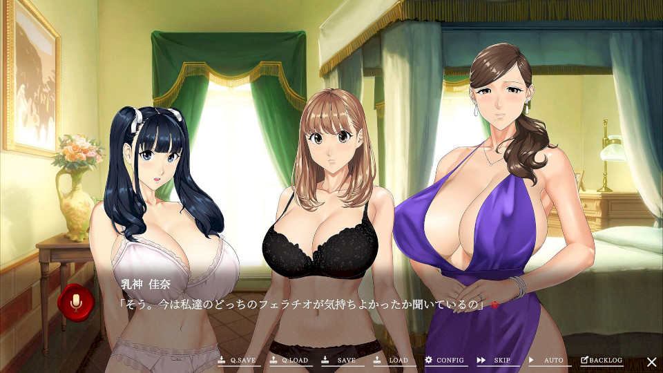 剧情简介 You develop Erectile dysfunction from the stress of working at a black company. Not even visiting your favorite prostitute can cure it. She tells you that she heard that there is a hidden hot spring called “Seikon no Yu” that restores sexual desire deep in the mountains. You decide to go there but the weather suddenly changes and you find yourself in danger. It is by chance that you find yourself in front of a western style manor. You head towards it and are welcomed by the maid. Courtesy of the Chichigami family, you are welcomed to stay the night. Manami, wife of Jinnosuke the head of the household, approaches you with an offer. “For one week, I would like you to be the night time tutor for my two daughters and teach them how to attend to someone at night.” [From Official Site]