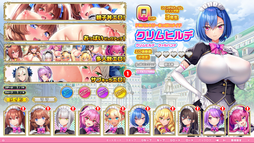剧情简介 おっぱいとメイドが何より好きな主人公。 いつか本当のご主人様になる日を夢見て、幼馴染みの萌依がバイトしているメイド喫茶で 日課のメイドソシャゲの『ご主人様と一緒にナマ着替えご奉仕ガチャ』をプレイしていた。 すると突然スマホの画面が眩いほどに輝き出し、驚く主人公と萌依。 「おお!? ついにガチャで神引きしたあ!」 しかしそれは神引きではなく、なんと萌依と母親の真亜紗と共に異世界に転移してしまったのだった。 そこは様々な種族が良きメイドになる為に学ぶメイド学園の大浴場! たわわに実ったおっぱいを揺らすメイド達に歓迎され…る事はなく、不審者として連行される主人公。 そしてメイド学園の理事長から、浴場で出会った9人のメイド達がとある呪いによってご主人様に仕える事の出来ない、 『呪われしメイドたち』であることを知る。 しかし異世界からの訪問者である主人公にこの世界の呪いは通用せず、 呪われしメイドたちが唯一仕える事の出来るご主人様である事が判明する。 どうかあの子達のご主人様になって欲しい、と理事長に懇願される主人公。 このメイドの国・フィフレシアのメイド学園で、自分だけのメイドたちのご主人様になる……答えは考えるまでもなかった。 「やりましょう!!」 かくして、ついに念願のご主人様となった主人公。 呪われしメイドたちにとっても、仕えるべきご主人様が現れたことは悲願の達成だった。 競い合うようにエロいご奉仕で主人公に尽くしていくメイドたち。 更にはメイドたちの母親も娘の援護射撃とばかりに、豊満な身体を張ったご奉仕で主人公を誘惑していく。 そのうえ主人公は異世界に来た際、イレギュラーなスキルである『ドスケベご奉仕スキル』を会得していた。 このスキルによりメイドたちの真心と下心にブーストを掛け、親子ともどもドスケベご奉仕で主人公に尽くさせていく。 そうして目指すはこのフィフレシアで最も栄誉ある大会、『MAID−1グランプリ』の優勝。 呪われしメイドと忌みられていた彼女達が、異世界から現れたご主人様を得て、 後にグランプリで大波乱を巻き起こすとは誰が予想しただろうか。 萌依も加えた10人のメイドたち(+その母親たち)を率いた主人公の性戦が、いま幕を開ける! 「俺のおっぱいメイドたちを、最高の真心と下心を持ったドスケベメイドに育て上げるぞっ!」