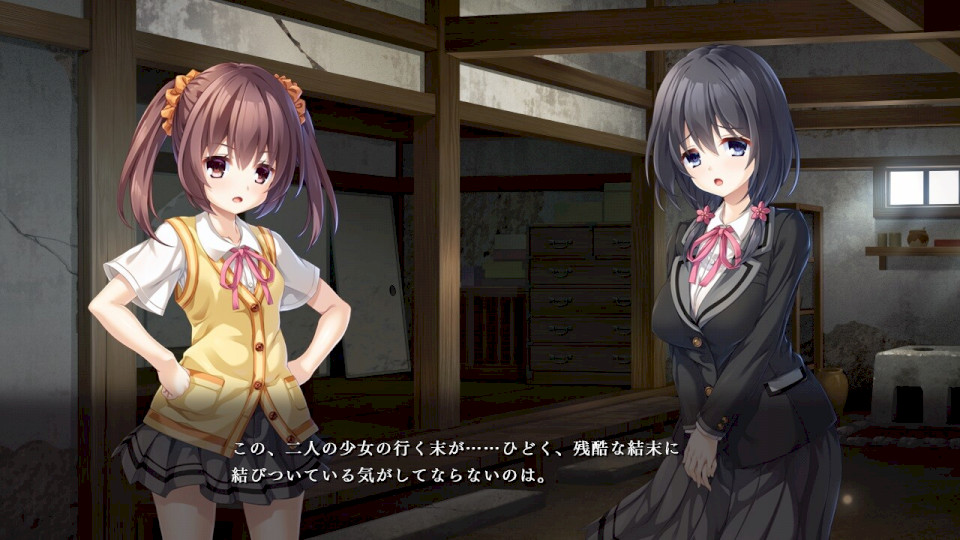 剧情简介 流传于小地方都市的隐秘村落传说。 为探究自己居住的城镇中残存的古老传说, 主人公八云一树与社团伙伴少女们踏入了传说中的山林。 本该是寻常青春篇章里的小旅行…… 「……这里是哪里?」 回过神来,一树等人已身处陌生之地。 薄雾中伫立着朽坏的屋舍,空气凝滞得仿佛时间已然停滞。 除他们之外不见人影,却随处可见生活的痕迹。 这里是被世人遗弃的深山小村——传说中的隐秘之乡『姬香村』。 无人记得究竟如何抵达此地, 更诡异的是,每当试图离开村庄,总会被浓雾吞噬,不知不觉间又回到原处。 在察觉到被某种不可名状的『某物』囚禁的同时, 一树等人仍怀着逃离的希望,开始了在村中的生存生活。 然而从那天起,一树开始目睹村中少女们沉溺于淫靡行径的身影。 在弥漫着馥郁甜香的废村里,回荡着熟悉少女的湿润娇喘。 一树也开始梦见侵犯她们的淫秽场景,体内仿佛有黑色物质不断渗透。 「此处乃“笼之里”。主人是受迎接而来的宾客……请务必慎重选择。」 在困惑于异变的一树面前现身的少女,笼女。 她告知离开村庄的前提,是必须选出一人作为人柱留在村中。 无法接受同伴牺牲的一树,为寻找逃脱线索开始搜查废村。 他们真正的归宿,究竟是逃离淫欲之力支配的废村,抑或是……? 这座村落,究竟是充满欢愉的乐园,还是被情欲枷锁禁锢的牢狱――――